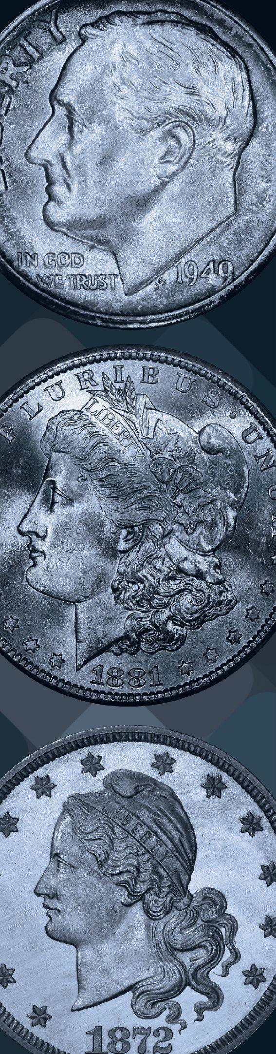 PrintedintheUnitedStates.Copyright2022Collectors Universe, Inc. All rights reserved. Reproduction of any kind without written permission of the publisher is prohibited by law. PCGS Rare Coin Market Report is published bi-monthly by Collectors Universe, Inc. at P.O. Box 9458, Newport Beach, CA 92658. Postmaster, send address change to Rare Coin Market Report c/o PCGS, Publication Department, P.O. Box 9458, Newport Beach, CA 92658.