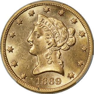 1869-S Eagle MS63 PCGS. CAC