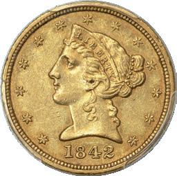 1842-D Half Eagle Large Date AU58 PCGS. CAC