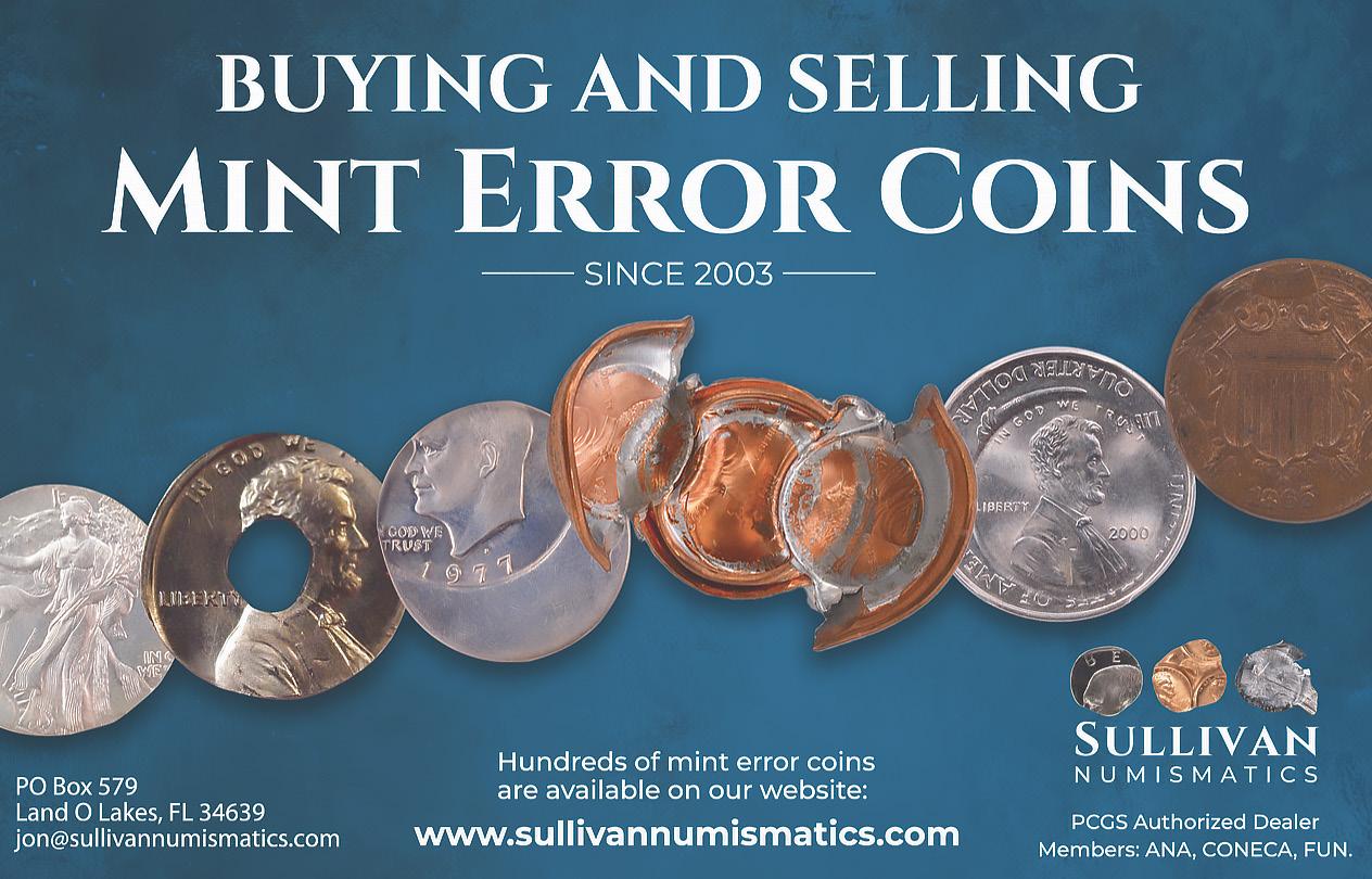 Publication of this magazine is not a solicitation by the publisher, editor, or staff to buy or sell the coins listed herein.