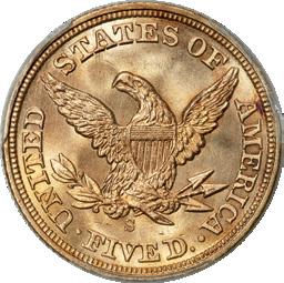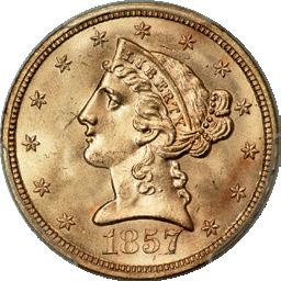 1857-S Half Eagle MS66 PCGS. CAC S.S. Central America