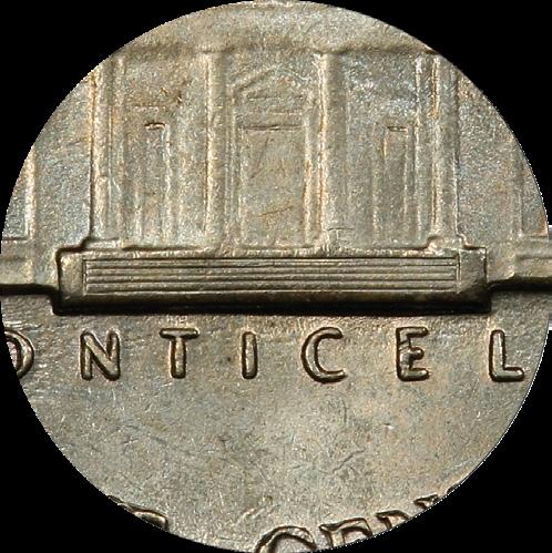 Full Steps (FS) PCGS designates Full Steps for Jefferson Nickels that grade MS60 or better and show a full five or six steps in the portrait of Monticello (Thomas Jefferson’s home) on the reverse. To qualify for this designation, a coin must also have no major disturbances, including cuts and marks, to the separation of the steps.