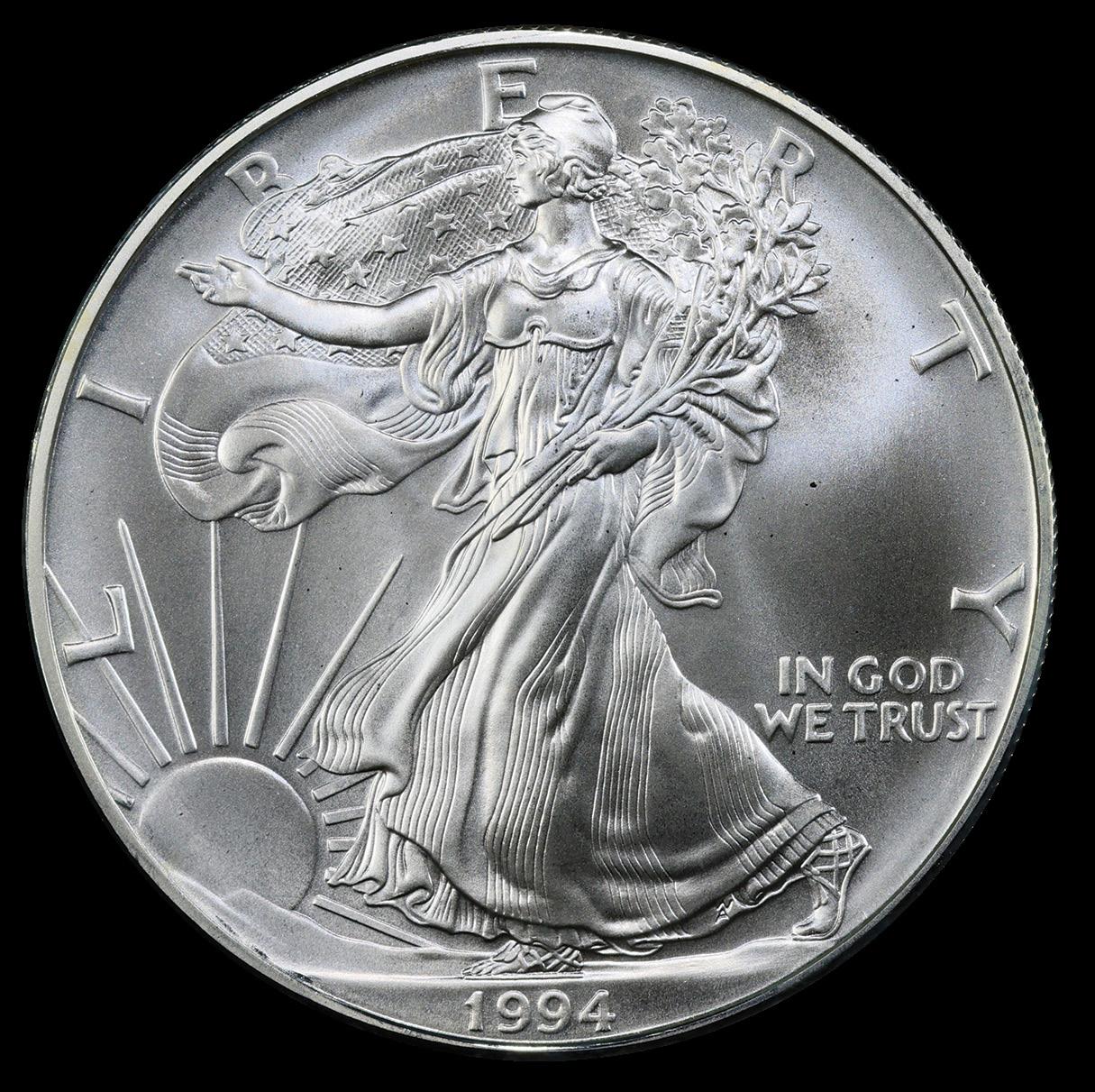 The 1994 bullion silver eagle has become a surprisingly scarce coin, not necessarily because of a lower mintage (it saw a relatively anemic 4,227,319 strikes). Rather, the scarcity of the 1994 bullion issue is seen on the front of conditional rarity, a circumstance of the high frequency of milk spotting seen with this issue and several others from this period. Milk spots, whitish-colored blotches that the Mint acknowledged and may stem from the process of preparing silver planchets for striking, affect grade and can result in grade deductions. This has been the case with 1994 bullion strikes, few of which have been able to earn a PCGS MS70 grade, in part due to the presence of milk spotting. At present, only 97 examples have been conferred the grade of MS70, a threshold of numismatic “perfection” at which PCGS-graded pieces currently command $11,000.