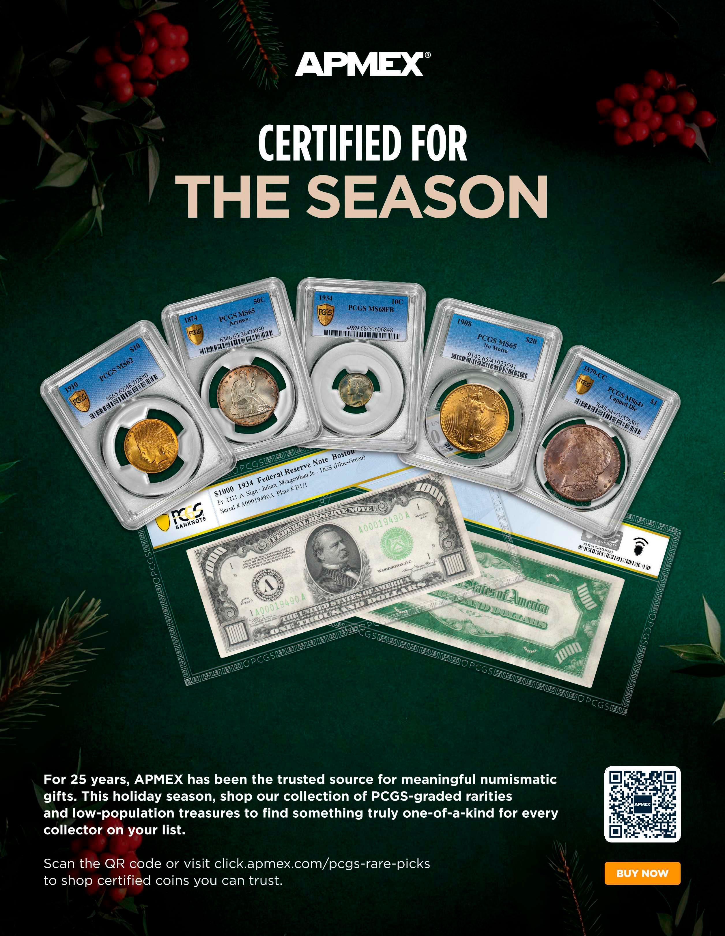 Covering a variety of topics, including Mexican silver, 19th-century United States medals, classic silver dollars, rare share certificates, and much more, the November-December PCGS Insider truly has something for everyone. And as we roll into the jubilee year for PCGS, we want truly everyone to know that we are here to help protect them on their collecting journey while making the hobby more fun for them, too. That also means we are here to advocate for your collecting interests and would love to know more about the areas of the hobby you care most about. We are listening and want to make sure that, along with the many big announcements we have in store for 2026, we can help you enjoy your numismatic endeavors even more.
