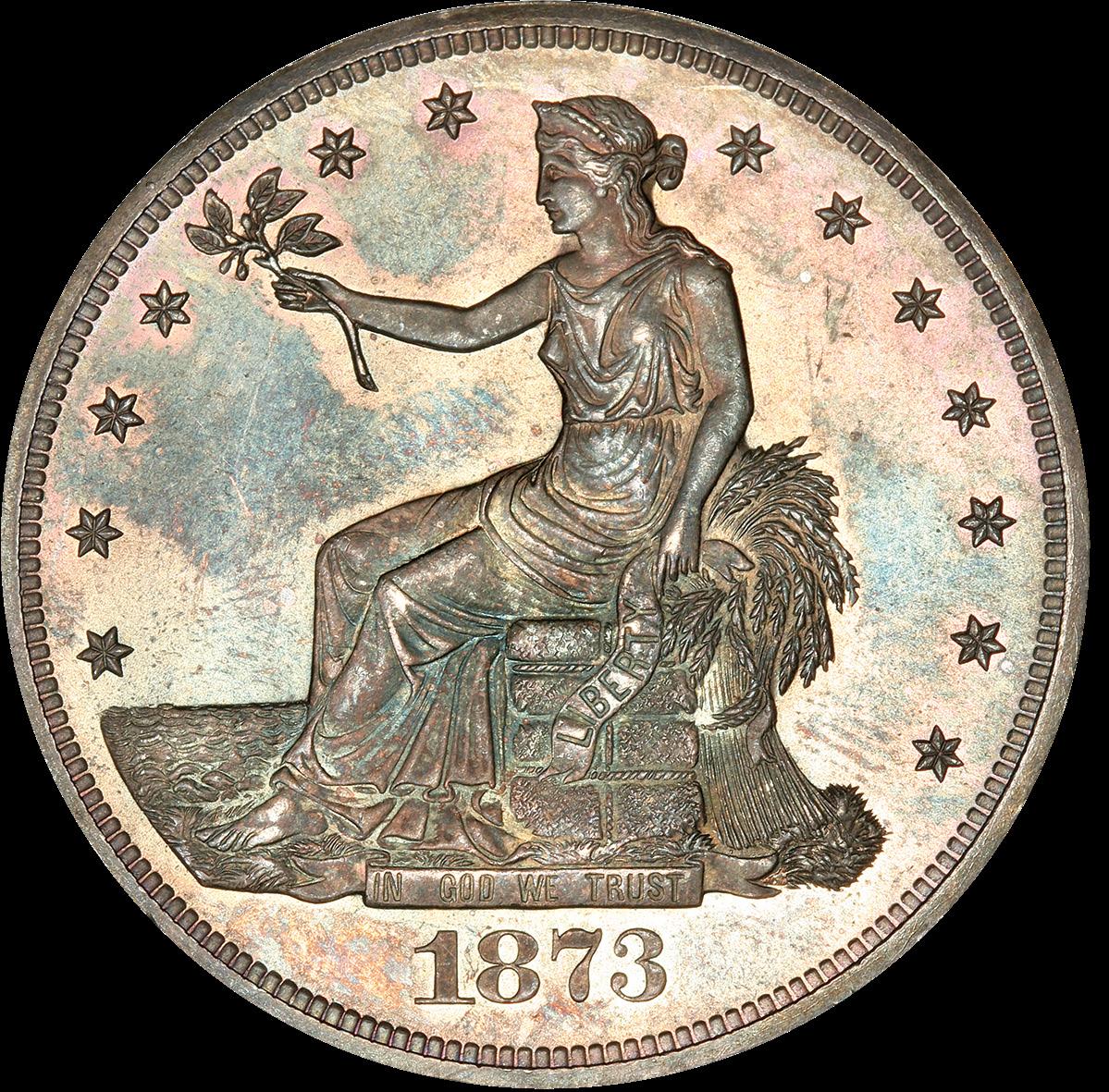 The Trade Dollar arose in 1873 at a time when the United States government sought to create a coin that could compete against other large-size coins circulating in international trade with Asia. The primary coin of choice for those involved was the Mexican 8 reales silver coins, which weighed 420 grains – 1.8% heavier than the standard United States silver dollar in production at the time. This compelled U.S. officials to devise a silver coin of similar specifications.
