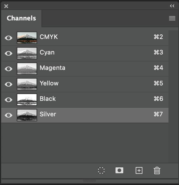 2. Click on the CMYK channel then select all (Command/Control A). This should show marching ants around your image. Copy (Command/Control C) then paste into the Silver channel.