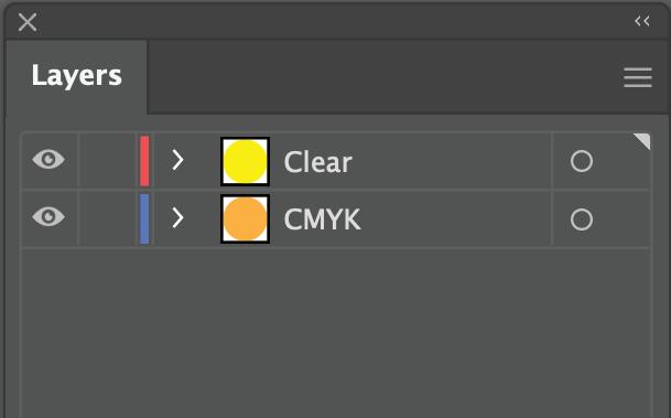 For Clear ink, your colour swatch should be set up as a spot colour as 100% Yellow and rename to Clear with a capital ‘C’.