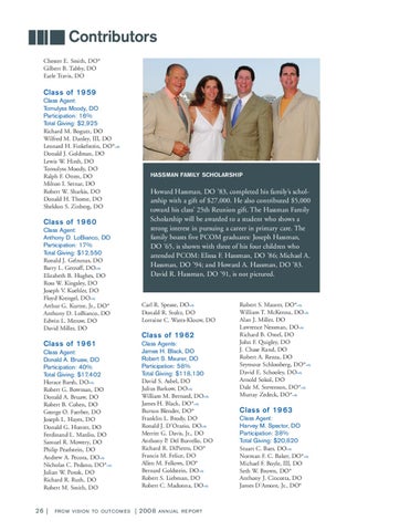 Class of 1963 Class Agent: Harvey M. Spector, DO Participation: 38% Total Giving: $20,820 Stuart C. Baer, DO鵷 Norman F. C. Baker, DO*鵷 Michael F. Boyle, III, DO Seth W. Brown, DO* Anthony J. Cincotta, DO James D’Amore, Jr., DO*