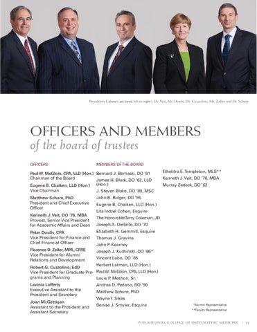 John B. Bulger, DO ’95 Eugene B. Chaiken, LLD (Hon.) Lita Indzel Cohen, Esquire The Honorable Terry Coleman, JD Joseph A. Dieterle, DO ’70 Elizabeth H. Gemmill, Esquire Thomas J. Gravina John P. Kearney Joseph J. Kuchinski, DO ’86* Vincent Lobo, DO ’65