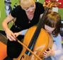 CLOCKWISE:Youngadultsreceivefluteandviolininstructiononanindividualandgroupbasis.PCSMFounderEva Brandysprovidescelloinstruction.PCSM’sYoungExplorersstudentsareexposedto