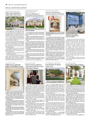 Spring Market has come early in 2019. While January and February tend to have fewer homes on the market, this year seems to be an exception with “a lot of excellent homes coming on the market early this year,” said Keith Conlon, general manager of Allie Beth Allman & Associates. Here are two new Park Cities listings. The eight-bedroom French chateau-style home at 3632 Normandy Ave. has a grand entrance and open living space. It has a large backyard and a mammoth underground garage with space for 11 vehicles. Relax in the master suite in front of a fireplace or on a covered balcony. A media room and wine cellar are in the basement. On the third floor is a large game room. A charming home at 3633 Southwestern Blvd. that would be a good candidate for remodeling or to build a whole new home on this popular University Park street. The living room has a wood-burning fireplace, and the den has a vaulted ceiling and a lot, and it has a second wood-burning fireplace and a loft. There is a banquette in the breakfast room. The master suite has dual sinks, and there is a guest quarters and a pool. To find your next home, visit www.alliebeth.com.