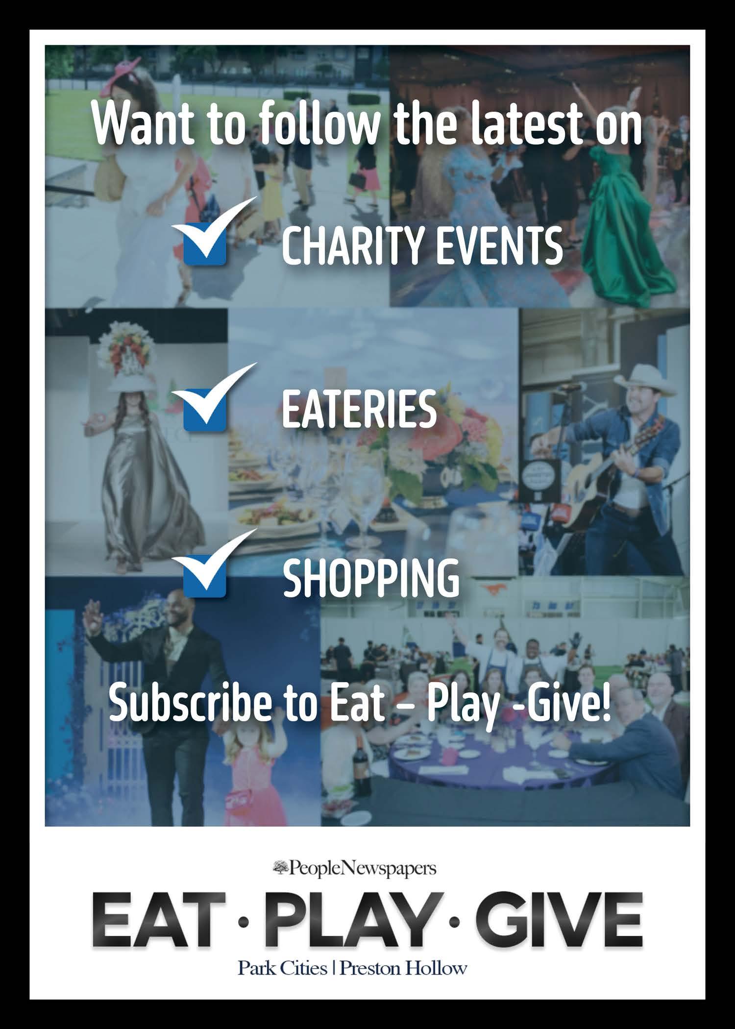 For more, check out our website, weekly Eat - Play - Give e-newsletters, and the monthly print editions of Park Cities People and Preston Hollow People