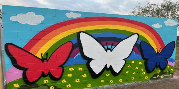 The Linn-San Manuel Veterans Park received a colorful facelift with the addition of three beautifully designed murals which were donated by the Edinburg Consolidated Independent School District as part of a park beautification project with Brewster School. The mural was designed by Adam Cantu, an art teacher at Brewster School and the Brewster Art Club students. The design depicts fun and colorful images for children and adults alike to take “selfies”. It also honors veterans with the silhouette of a soldier and the colors of the United States of America and Texas flag. The tagline on the mural “Pride in the Country” reflects the pride of the small community located in the most northern part of Precinct 4. The design was painted by Oneida Aceves Trevino, an artist, with Creative