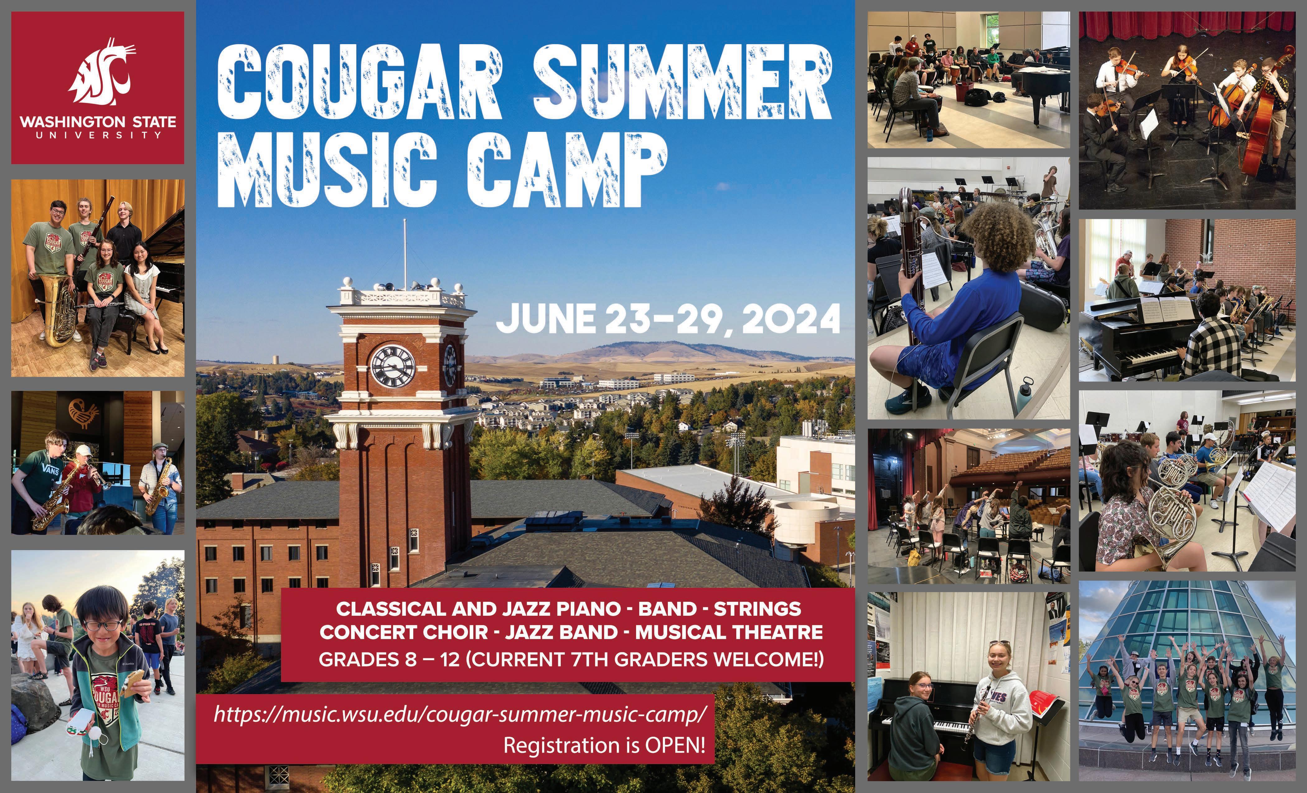 Campers will work with outstanding Washington State University faculty members to improve their skills through private lessons, master classes, lectures, seminars and performances. Students will also explore other areas of interest such as music theory, rock-and-roll history, jazz improvisation, conducting and more.