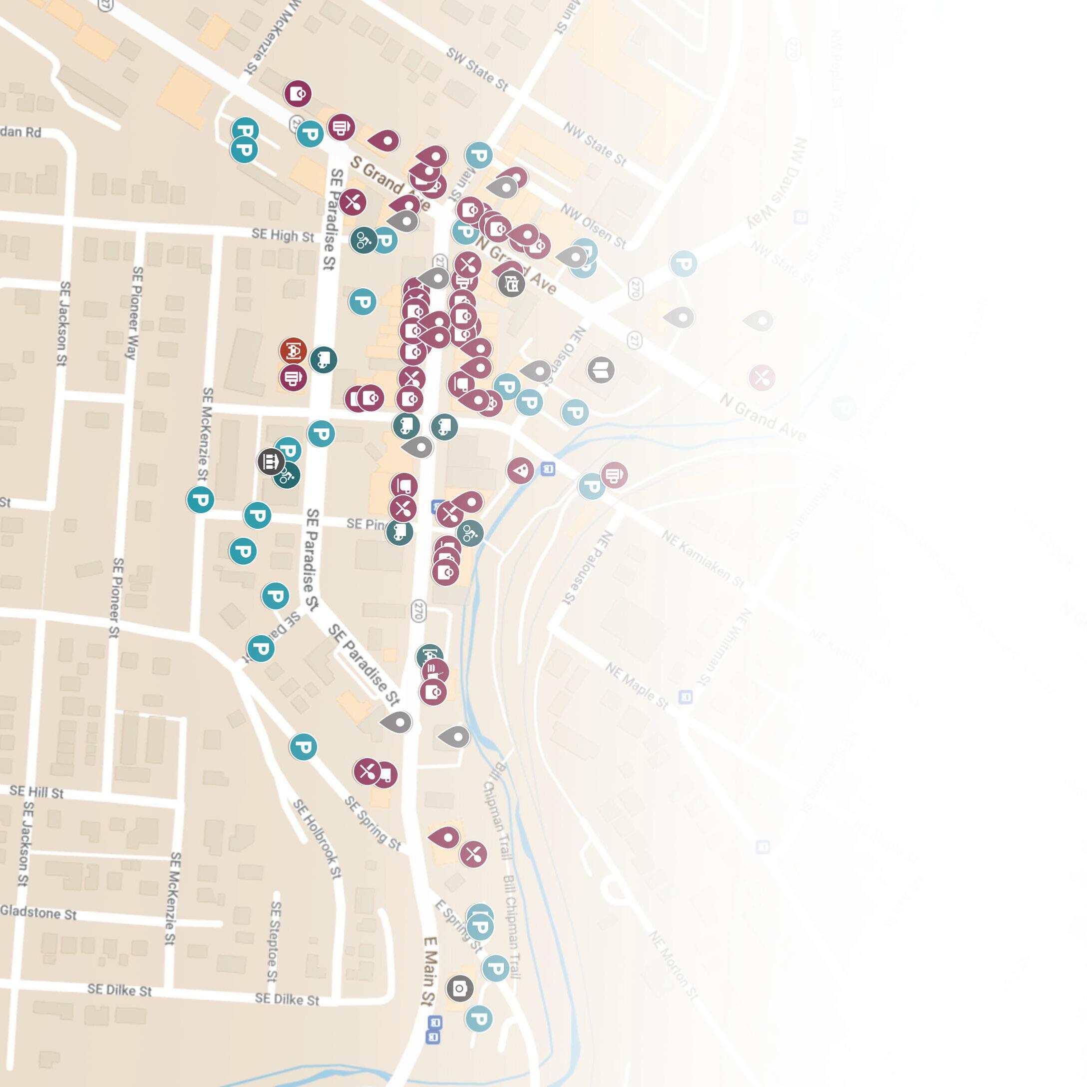 Downtown businesses are OPEN during construction. Parking is available within a short 1-2 block walk of most downtown shopping, restaurants, and professional services