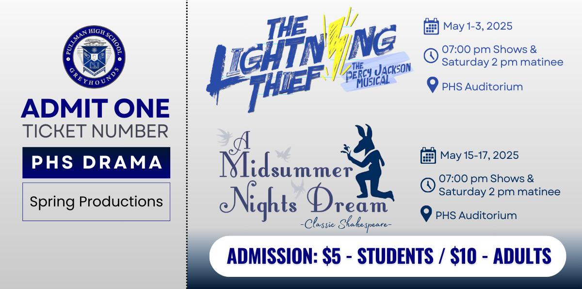 • PSD, Pullman High School Drama Production: "Lightning Thief: The Percy Jackson Musical", 2:00 p.m. and 7:00 p.m. at PHS