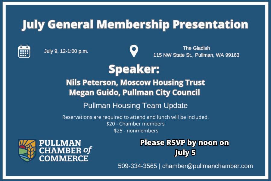 Membership dues are assessed on the anniversary month of a member joining the Chamber. Special thanks go out to the following businesses and individuals who have elected to continue their support of the Pullman Chamber of Commerce: