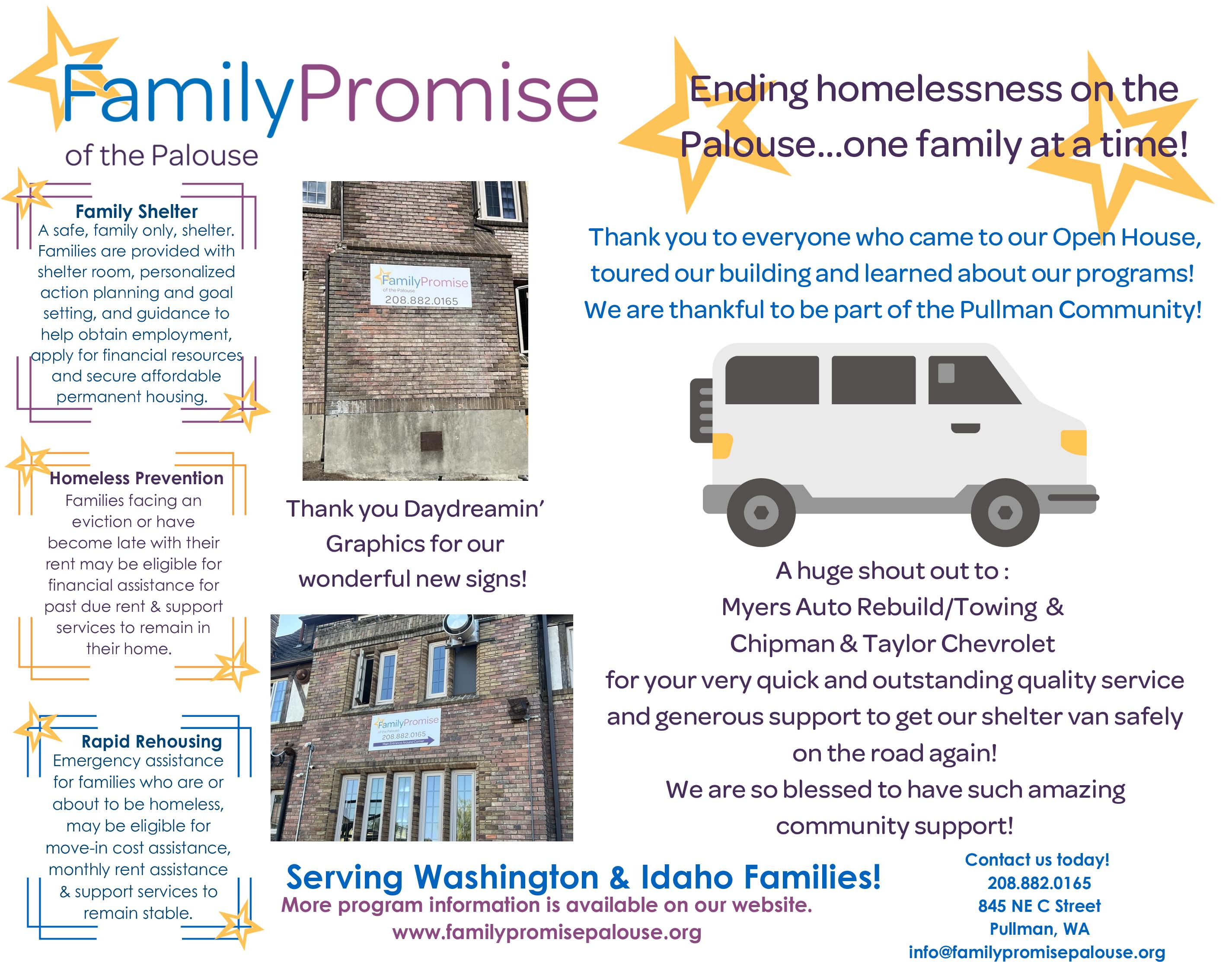 A big thank you to our Platinum Donors: Furniture Center, Helene’s Property Place, NRS (Northwest River Supplies), Schweitzer Engineering Laboratories, Suzanne Scott (as of July 6 - Thank you to all donors, listed on our website.)