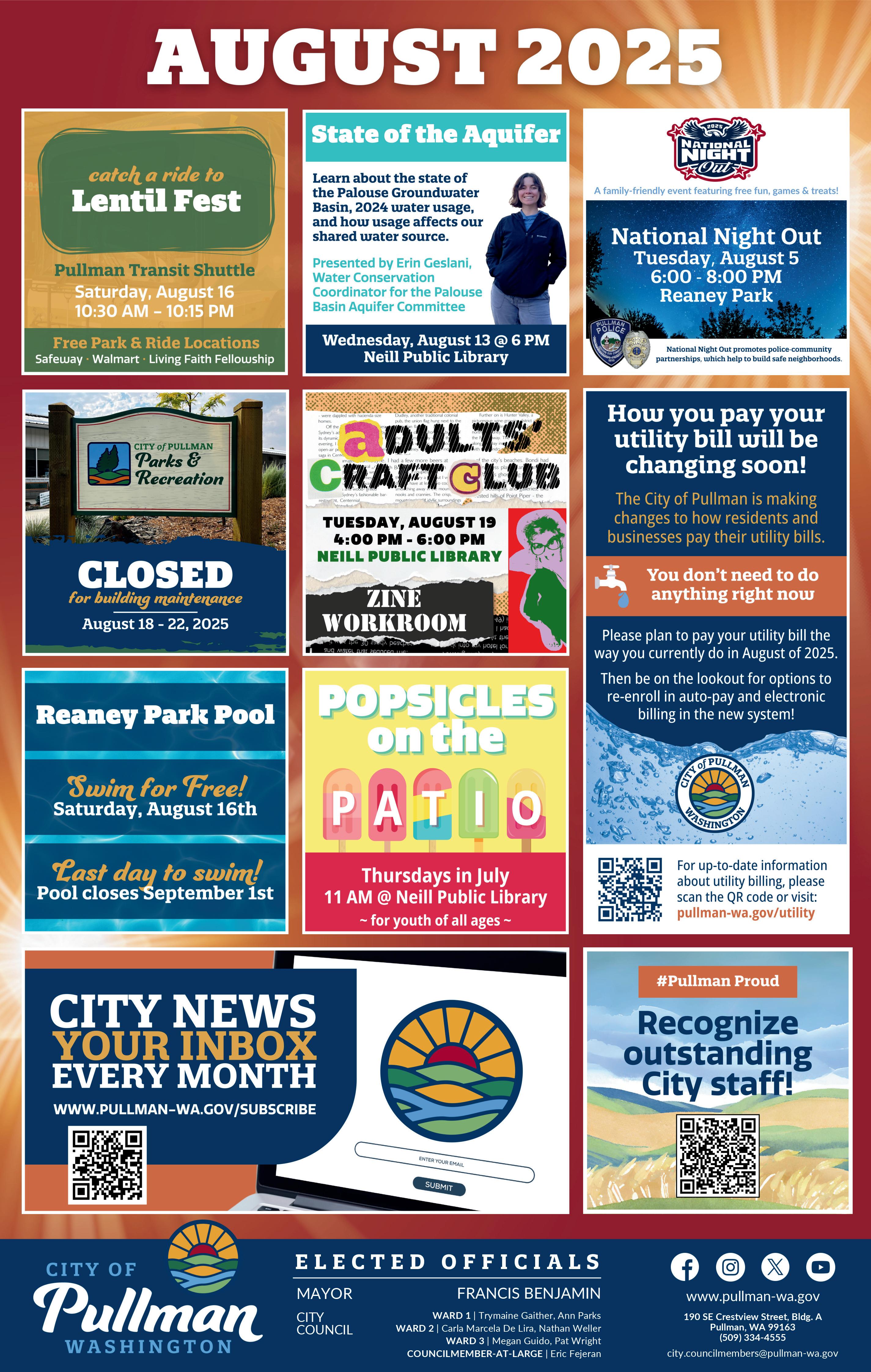 • Pullman City Council Meeting, 5:30 p.m., City Hall