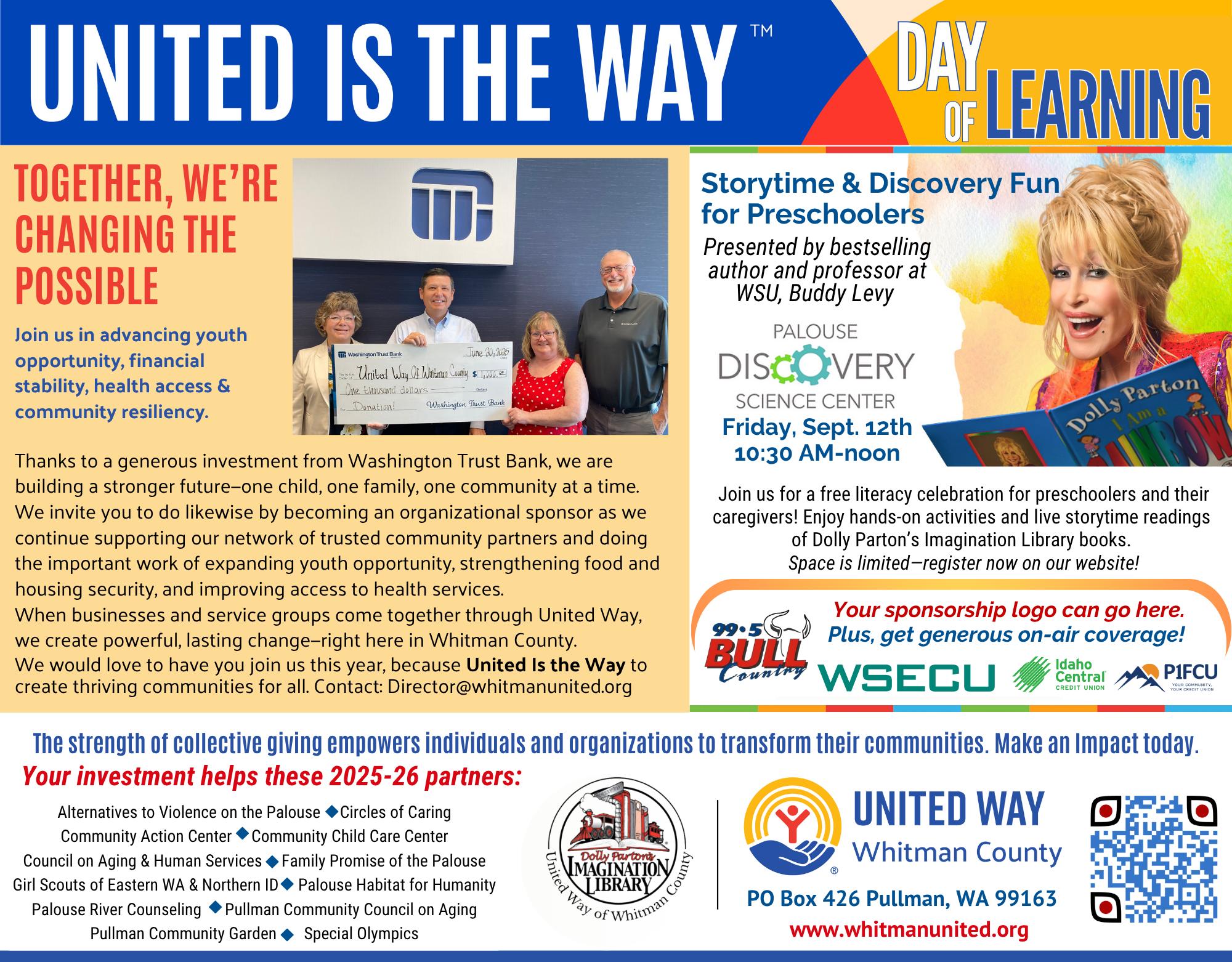 One key event held every August is Stuff the Bus, hosted by the Kiwanis Club of Pullman. This year’s event will take place August 7–9, 2025. It was created to collect and distribute school supplies for students in need across our community. A list of needed items can be found at https://kiwanisclubofpullman.org/stuff-the-bus/, and cash donations are also welcome to help schools purchase supplies most needed throughout the year.