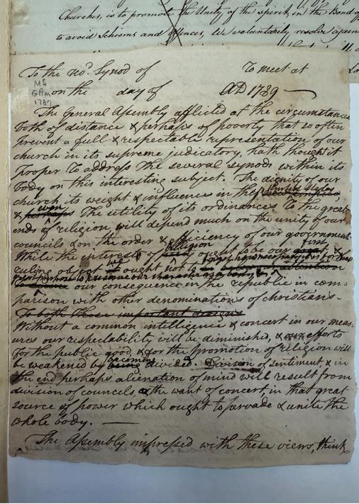 “The General Assembly, afflicted at the circumstances, both of distance, and perhaps of poverty, that so often prevent a full and respectable representation of our church in its supreme judicatory, hath thought it proper to address the several synods within this body on this interesting subject. The dignity of our church, its weight and influence in the United States, and even the utility of its ordinances to the great ends of religion, will depend much on the unity of our councils, and on the order and efficiency of our government. …”