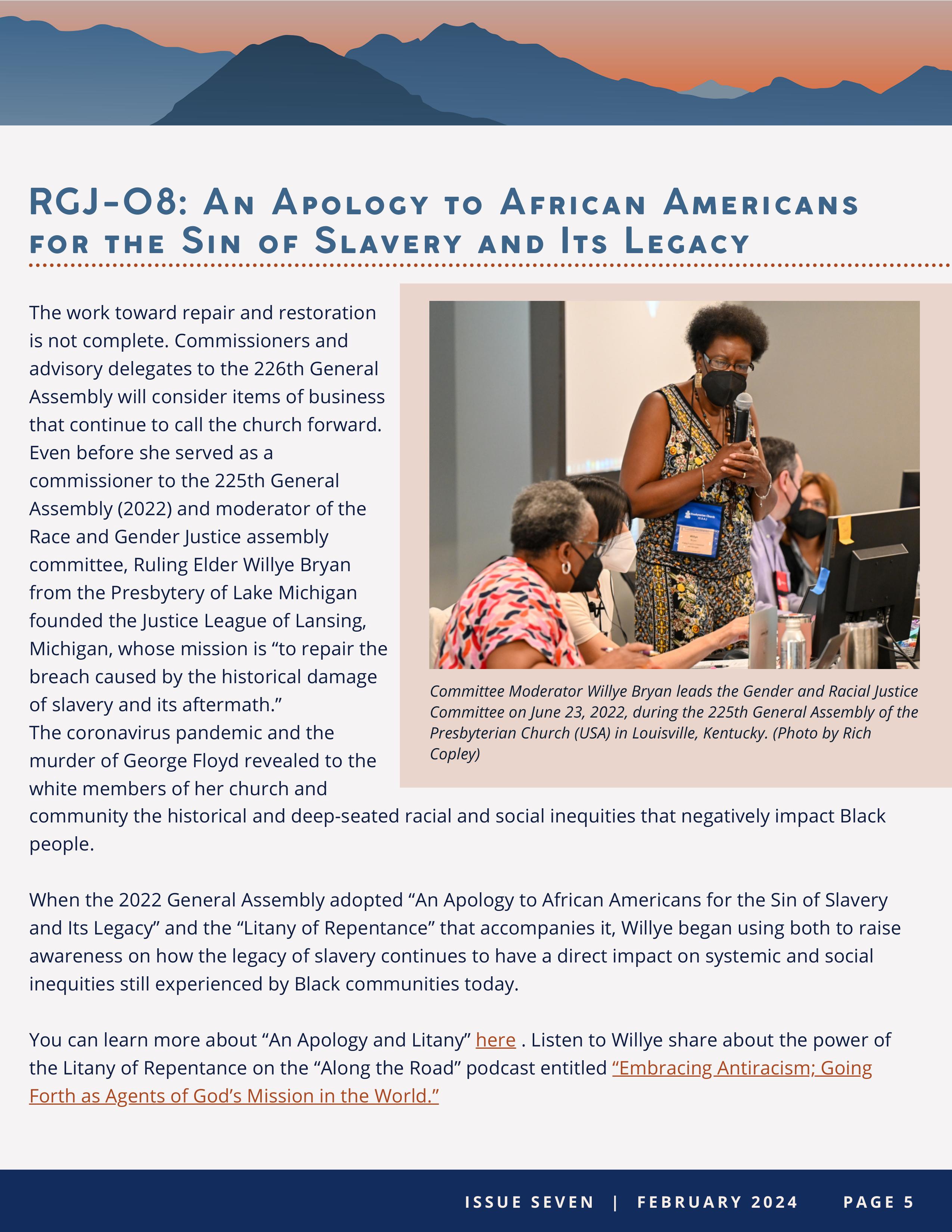 In 2022, the 225th General Assembly approvedrecommendations from the report of the Disparities Experienced by Black Women and Girls Task Force that, among other things, directed the Presbyterian Mission Agency to engage in the work of eradicating systemic violence against Black women and girls. Through the Matthew 25 vision, churches like Liberty Community Church are doing just that.