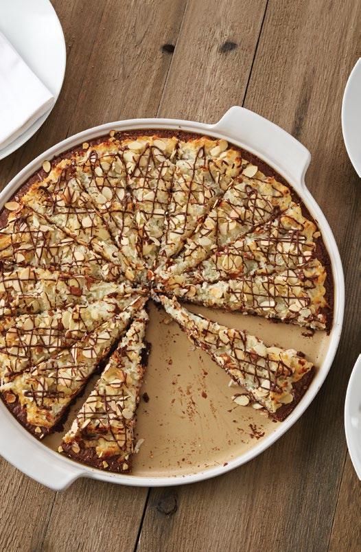 1 Preheat oven to 375°F (190°C). In Classic Batter Bowl, prepare brownie mix according to package directions. Pour batter onto White Large Round Stone, spreading evenly to edges (see cook’s tips).
