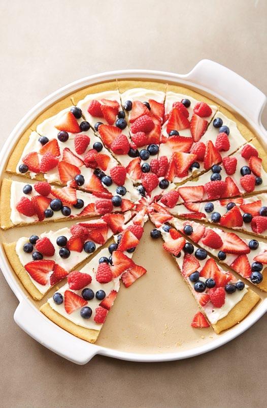 1 Preheat oven to 350°F (180°C). For crust, shape cookie dough into a ball. Place dough in center of White Large Round Stone; flatten slightly with palm of hand.