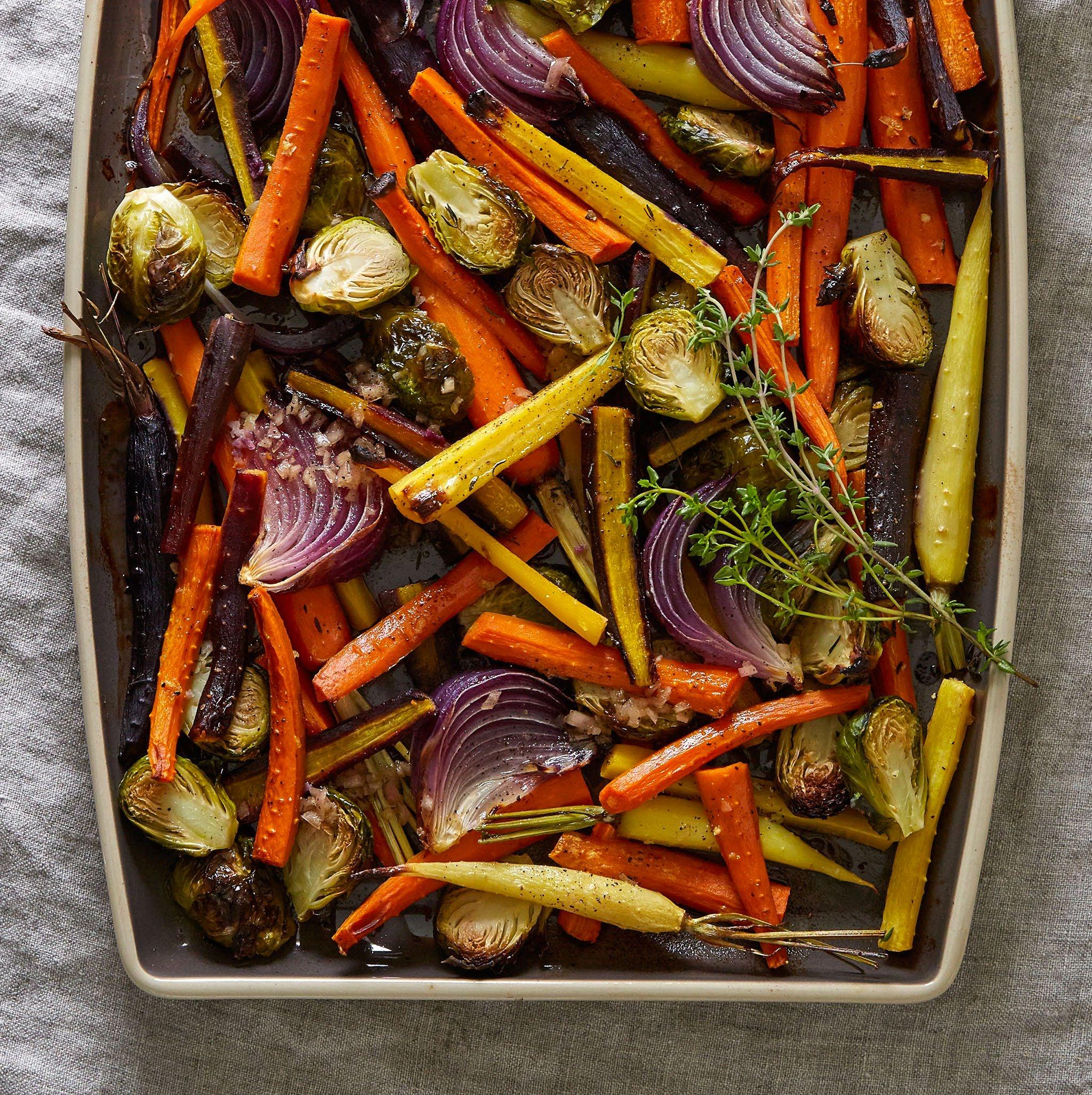 2. Place the vegetable mixture onto the Stone Bar Pan or Large Entertaining Platter and bake for 30–35 minutes, or until the vegetables are tender.