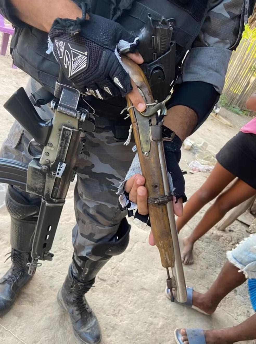 A Polícia Militar foi acionada e prendeu Joaquim Roque em flagrante delito, além de apreender a arma de fogo usada no crime.