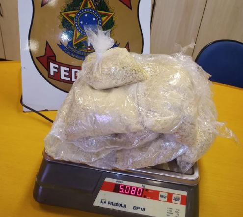 A suspeita foi conduzida até a Superintendência de Polícia Federal, onde foi confirmado que os volumes presos ao corpo eram de