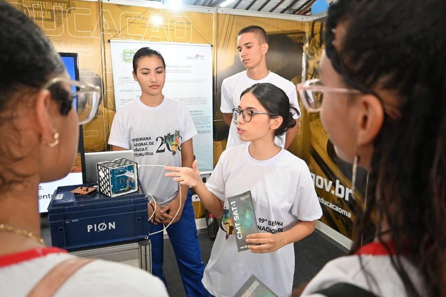 Os jovens protagonistas dos Centros Educa Mais, escolas em Tempo Integral da Rede Pública Estadual, apresentaram, na tarde de quinta-feira (20), durante a programação da Sema na Nacional de Ciência e Tecnologia do Maranhão, no stand da Secretaria de Estado da Educação (Se duc), trabalhos de inovação desenvolvidos nas escolas através da disciplina de robótica.