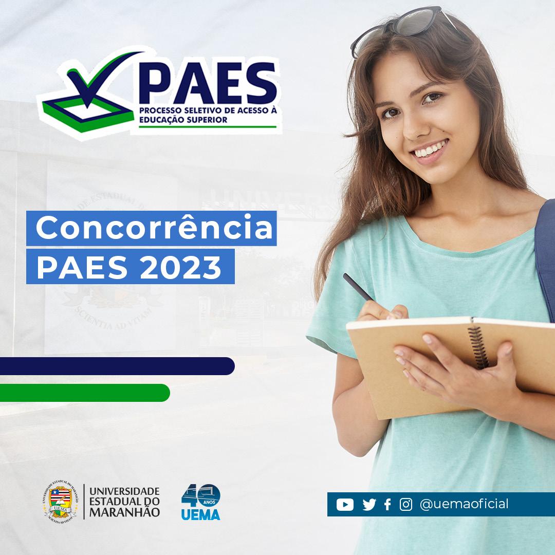 A Universidade Estadu al do Maranhão (UEMA) divulgou a concorrência do Processo Seletivo de Acesso à Educação Su perior (PAES) 2023. Nesta edição, os cursos mais concorridos do vestibular são: Curso de Formação de Oficiais Polícia Militarsistema universal/feminino, com 146,43 candidatas por vaga; Medicina (Cam pus Imperatriz - UEMA SUL) - sistema universal, com 131,56 candidatos por vaga; e o Curso de For mação de Oficiais Polícia Militar - cota para negros/ feminino, com 128 candi datas por vaga.