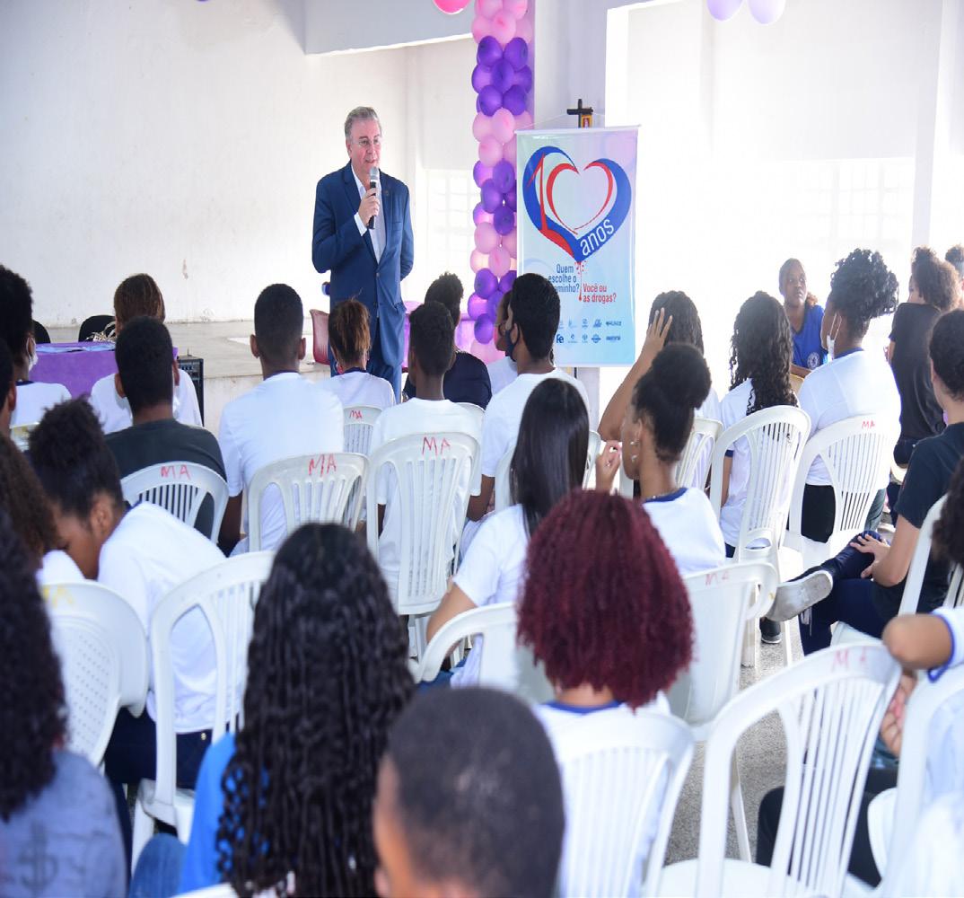 respectivamente, minis traram uma palestra aos estudantes sobre a te mática “Quem escolhe o seu caminho: Você ou as Drogas?”.