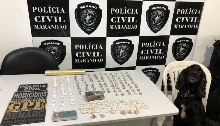 A Polícia Civil do Maranhão, através da Superintendência Estadual de Repressão ao Narcotráfico (SENARC) , realizou na manhã desta segunda-feira (19) ,a prisão de um homem, de 24 anos , pelos crimes de posse irregular de arma de fogo e tráfico de drogas no bairro Coha -