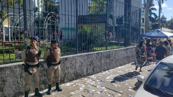 mou que as duas vítimas estão conscientes e rece bem atendimento médico. “O policiamento foi refor çado e o local de votação permanece em funciona mento”, diz o comunicado.