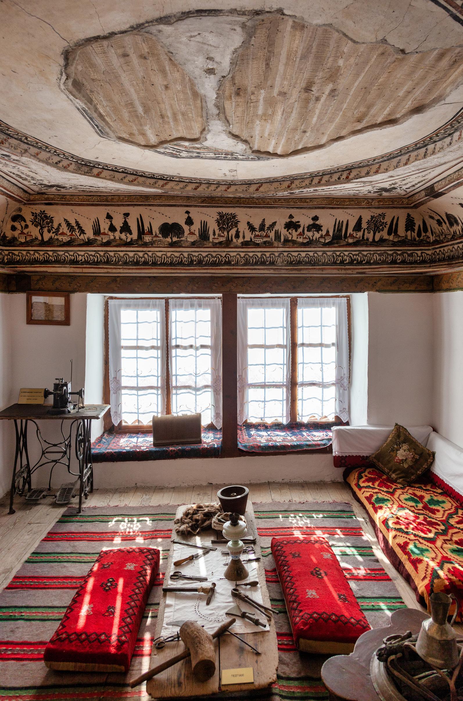 τουαλέτα και επιπλέον δωμάτια με τζάκια. Το αρχοντικό φέρει εξαιρετικό ζωγραφικό διάκοσμο (με λουλούδια, καράβια,