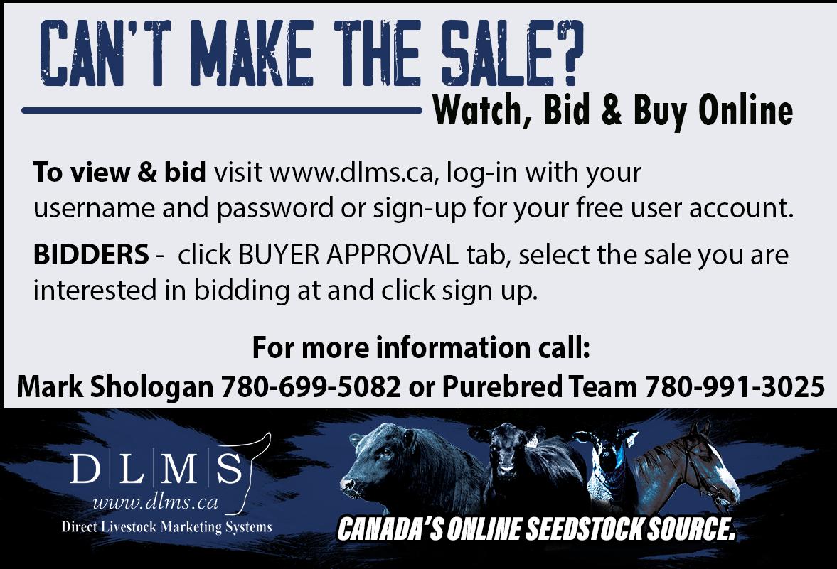 Animals will be sold singly or in lots to the highest bidder. Bidding will be carried out in CDN dollars.
