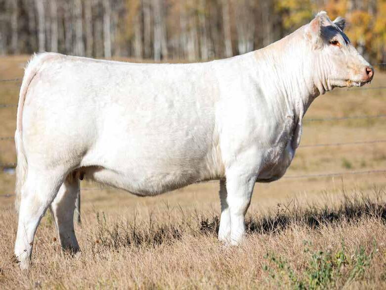 It is hard to believe that this is our 4th year selling in the Alberta Select Sale. It seems like just a short time ago that we bought CML Evetta 808F. We are proud to sell our best Charolais heifer again this year. The 4th one from the Evetta cow family. To get noticed you have to sell your best when the other consigners are and RJY Evetta 501N is just that. CONSIGNED BY HIGH COUNTRY CATTLE