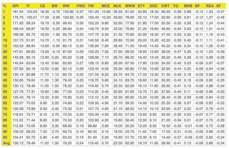 For bulls to have a Terminal Sire Index they must be registered with the American-International Charolais Association. Each bull must also have an EPD for BWT, WWT, YWT, MAT, REA, HCW, MARB and FAT.