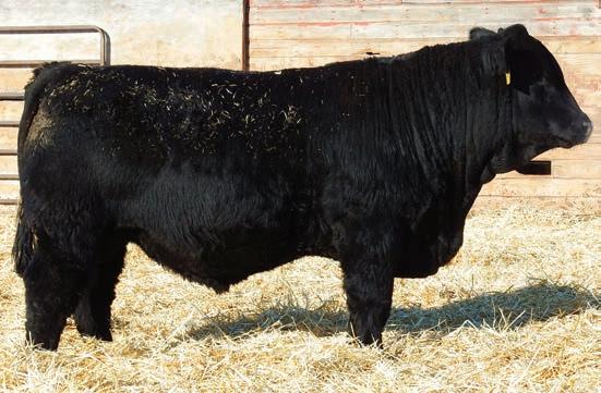 Hetero Black, Homo Polled by pedigree. He ranked 2nd for 365 wt. Top 5% ADG, MWW; 10% YW, MILK, CW; 15% WW; 20% REA; 25% TI. Dam D255 has had all bull calves that have made it to the bull sale. She has a 102 weaning and 105 yearling ratio on those five bull calves. A powerhouse, tremendous depth and thickness in lot 159.