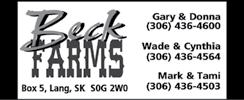 12 DC/KCM MARKSMAN E1145 The Beck Family Wade 306-436-7458 wcbeck@sasktel.net Located 4 miles south of Milestone, Saskatchewan BECK FARMS & MCCOY CATTLE CO. Bull Sale Wednesday February 28th 2024 Thank you to all our bidders and buyers that made our 14th annual bull sale such a success Selling 100 Charolais and Hereford bulls featuring over 40 Charolais two year old bulls. Charolais Connection • Fall 2023