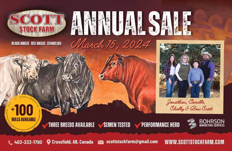 www.highbluffstockfarm.ca It’s time to start looking at the numbers that matter. Actual WW and YW and the dollars in your pocket. Real bulls. Real performance. Real numbers. Real money. The Jacksons, Inglis, MB Carman & Donna: (204) 773-6448 Erin & Stephen: (204) 821-4110 or (780) 305-9196 annual Charolais & s immental bull & F emale sale Friday, m ar C h 15, 2024 Charolais Connection • Fall 2023 5