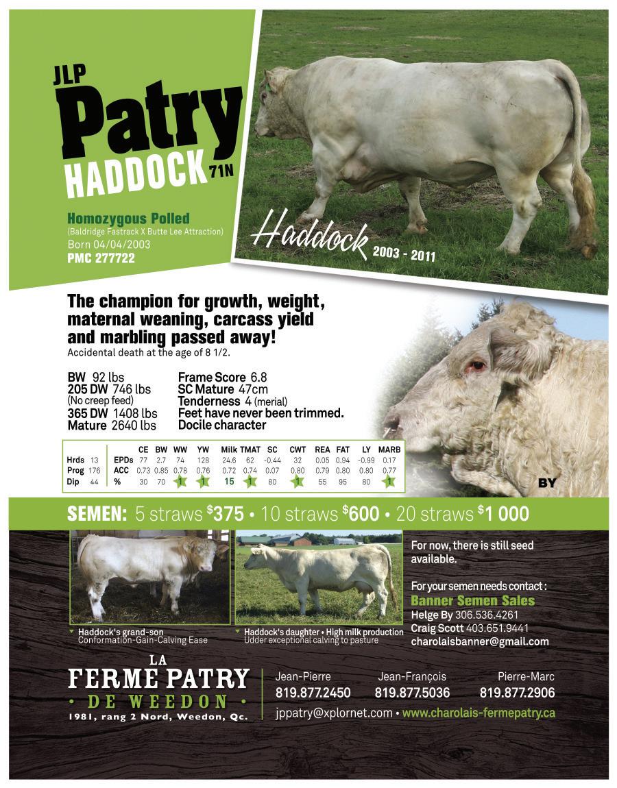 Il y a beaucoup de taureaux à travers le Canada qui peut améliorer la race et l’intérêt pour de nouveaux taureaux de sélectionneur est le plus haut que j’ai jamais vu. Entrez en contact avec Craig ou moi-même si nous pouvons être de n’importe quelle aide ce printemps.