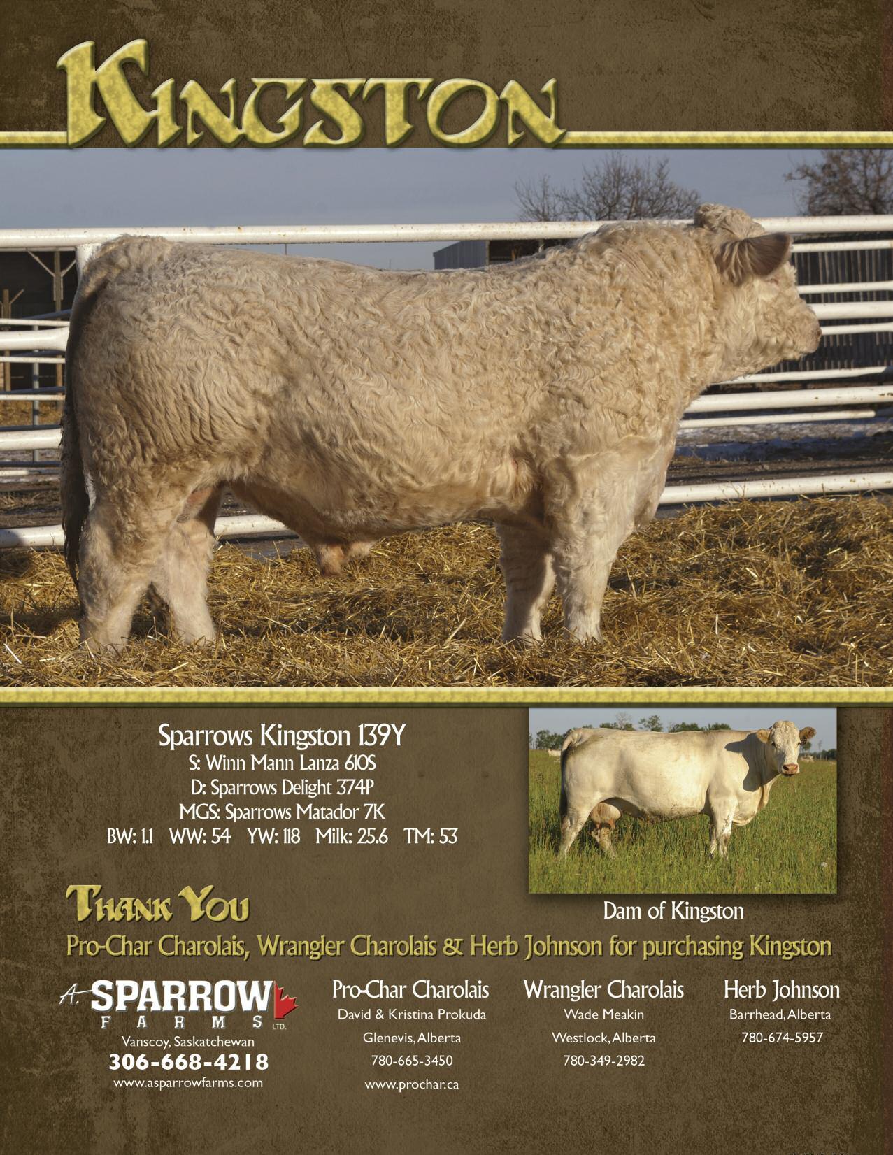 FIELDMEN: Alberta & British Columbia Craig Scott 5107 42nd Street, Olds, AB T4H 1X1 Res (403) 507 2258 Fax (403) 507 2268 Cell (403) 651 9441 email: sbanner@telusplanet net Saskatchewan, Manitoba, USA & Eastern Canada Helge By 124 Shannon Rd , Regina, SK S4S 5B1 Office (306) 546 3940 Office Fax (306) 546 3942 Res (306) 584 7937 Cell (306) 536 4261 email: charolaisbanner@sasktel.net