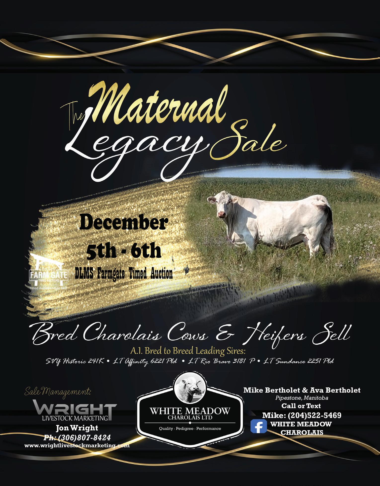 White Meadow Charolais Bull Sale, Farm Gate Timed Online, Pipestone, MB