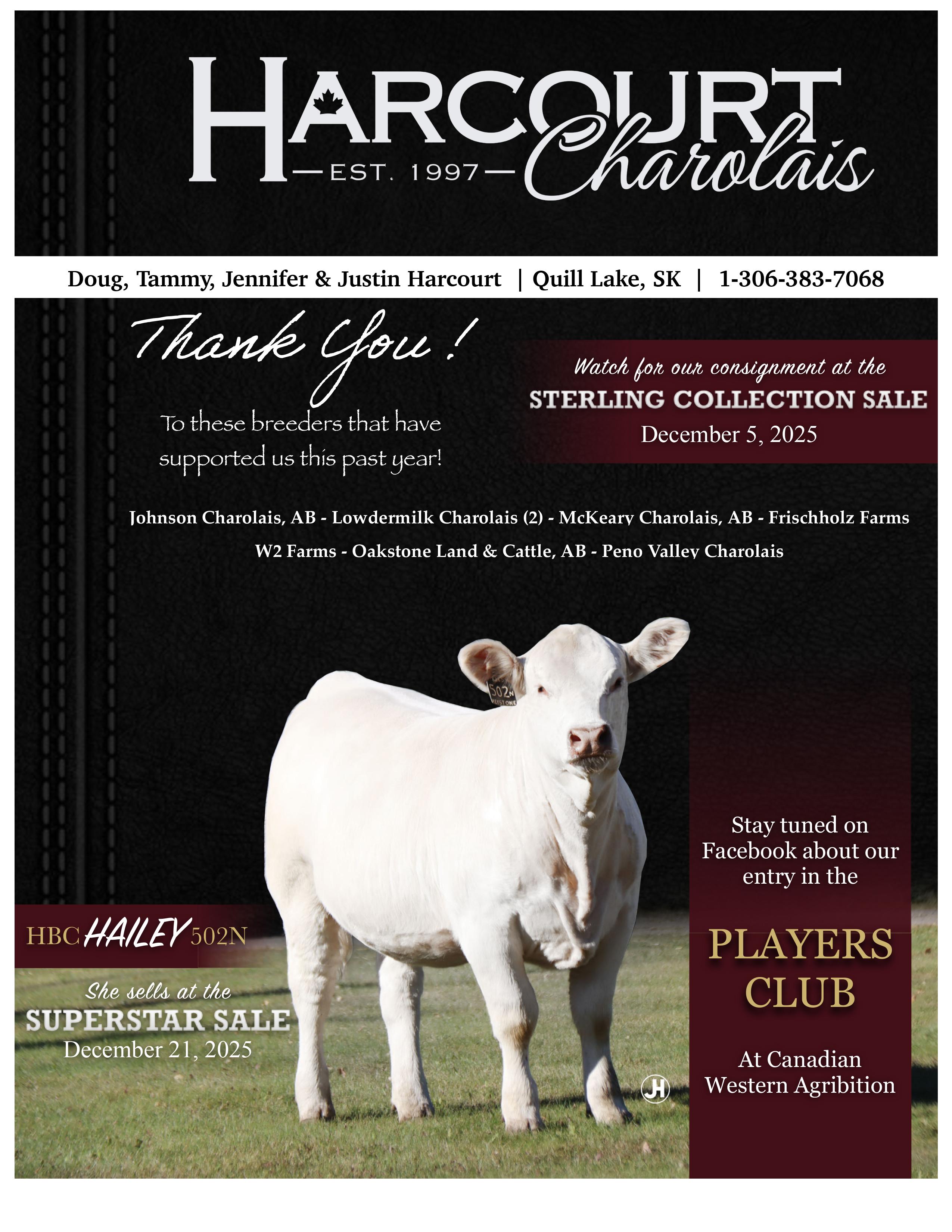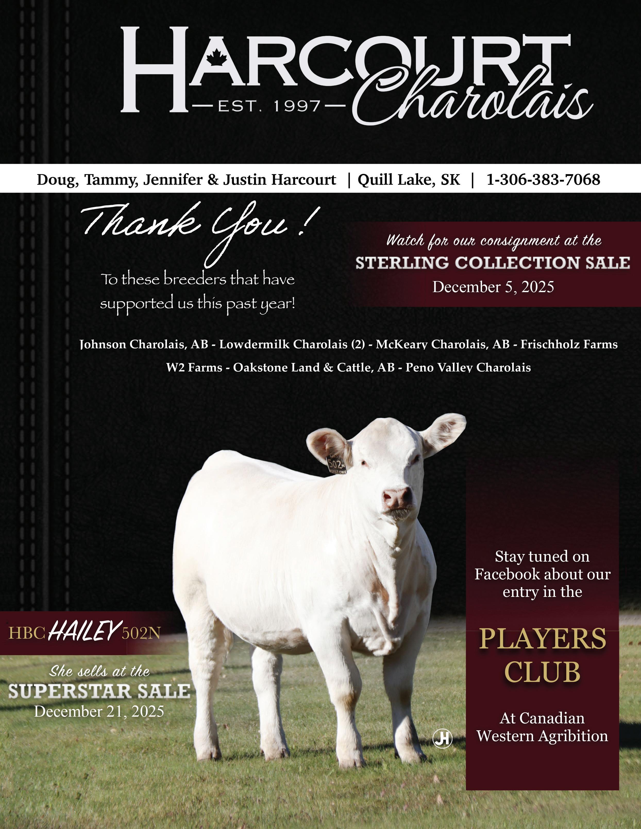 Justin Harcourt 306-383-7168 justin@charolaisbanner.com