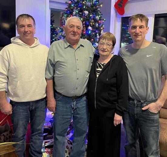 In addition to cattle farming, we also grain farm. Our three sons enjoy helping out with seeding, haying and harvest. Trae is 17 and will be graduating high school in May. Kohl is 16 and in grade 11, while Vahn is 13 and completing his grade 8. They enjoy a wide range of activities such as hockey, dirt-biking, snowmobiling and watersports. They keep us busy for sure but the older two have a license now and that makes farm operations and leisure activities run a lot smoother! My wife continues to love teaching and has recently taken on a job at our local high school. Education is her passion, much like farming is mine. Our nephew, Colton Stephen, is also employed by the family farm and has become an asset to the operation. When everyone pitches in, we can honor the hard work and dedication founded by my parents, Murray and Lousie Stephen. These young lads sure love working with grandpa! And I think he gets a kick out of it too!