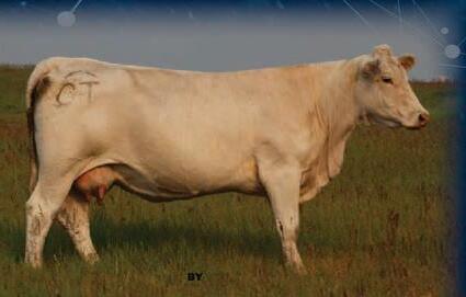 An existing flush cow in our herd. She is a powerhouse dam with good feet, udder, and an excellent profile. With a weaning index of 120, her progeny are top gaining animals on feed efficiency testing. A top notch epd profile dam both within the Highway 21 program and the Charolais Association.