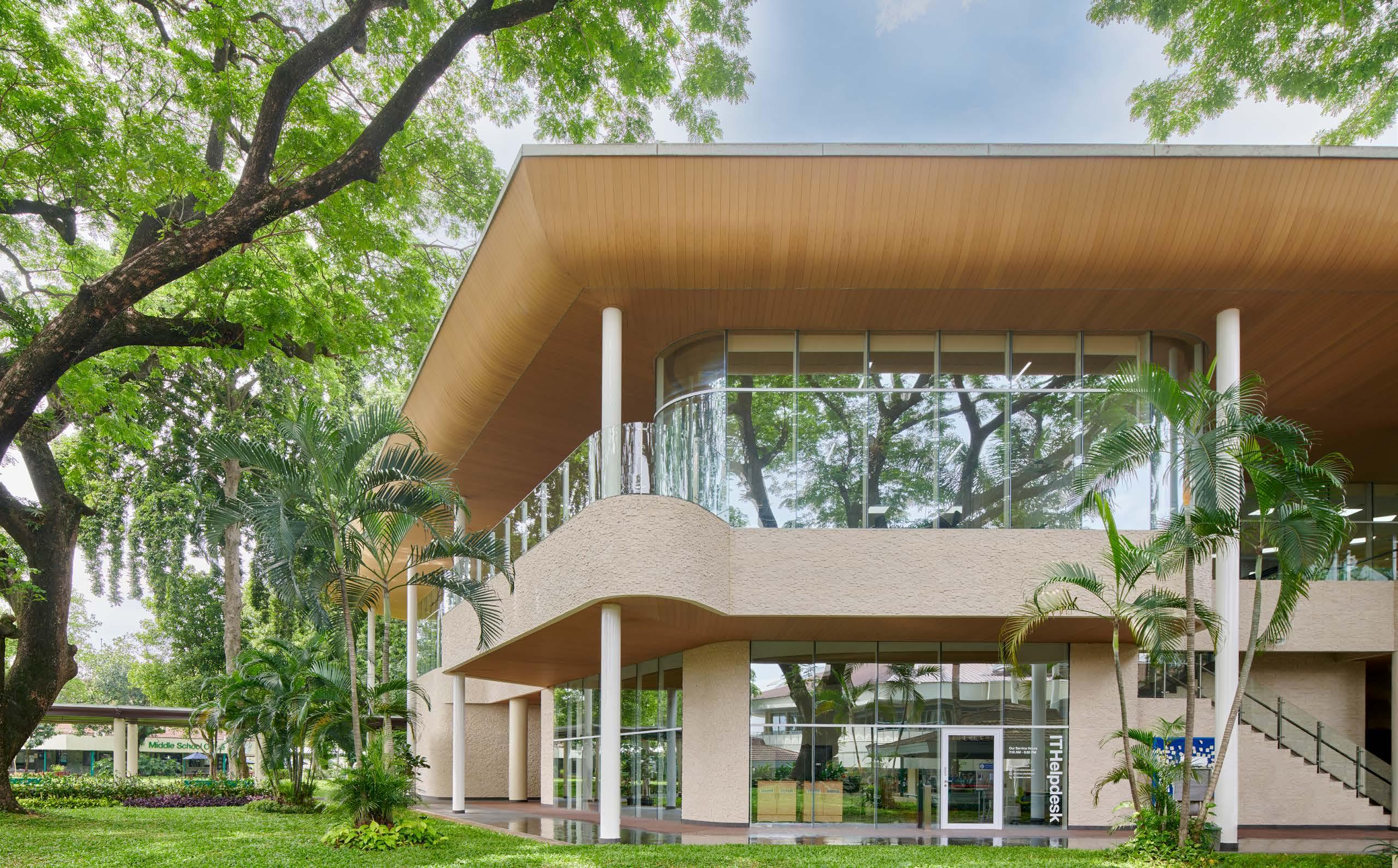 PDW has been trusted with an extraordinary project, breathing new life into the JIS High School Library. Situated amidst the verdant Jakarta Intercultural School campus, this high school library overlooks the serene inner courts, enveloped by a mature canopy of trees. Serving as a pivotal hub, the library effortlessly connects multiple building clusters, providing easy access from all directions. Step into the building from any of its sides, the first floor welcomes you with a host of amenities which lead to corridors that guide visitors to the heart of the library—the atrium